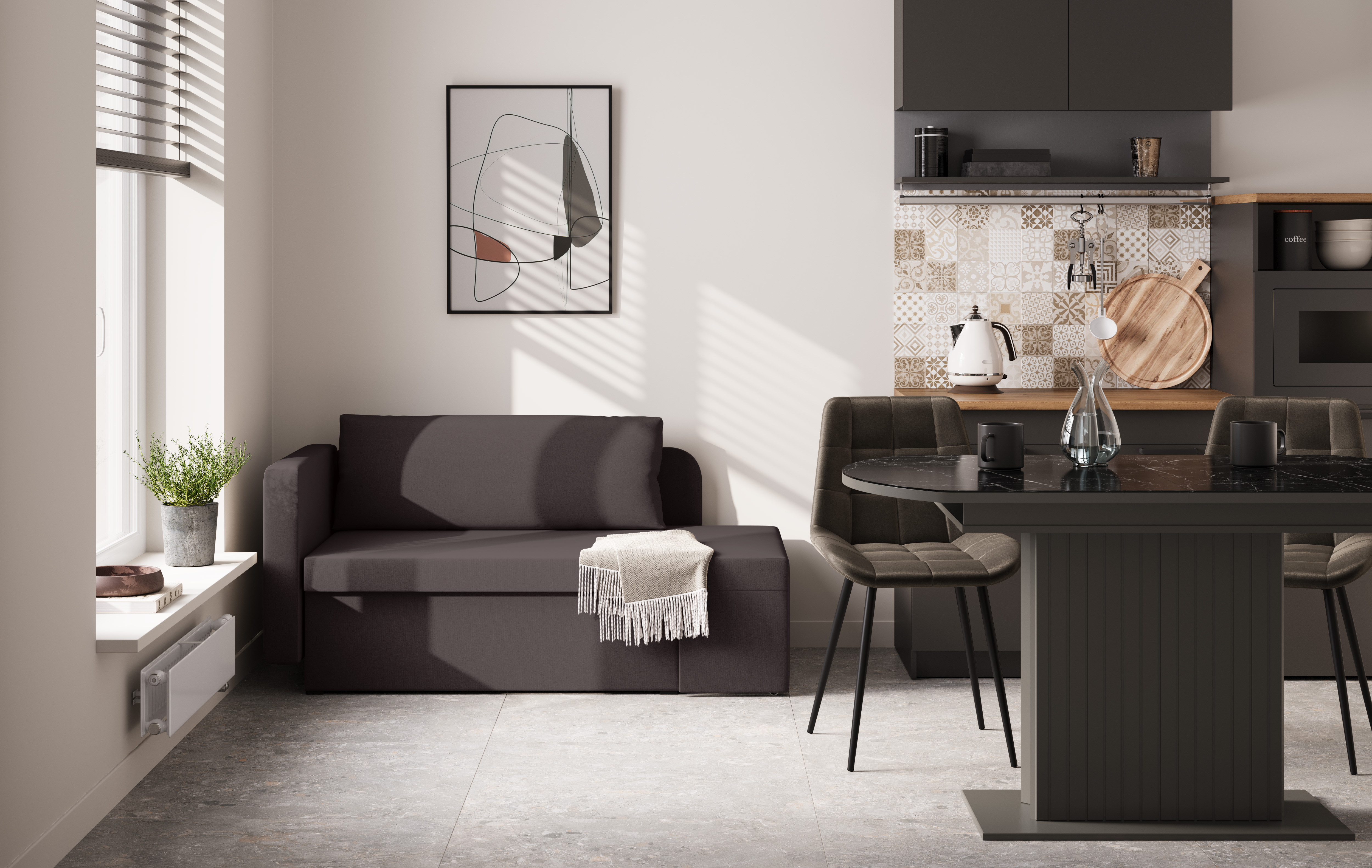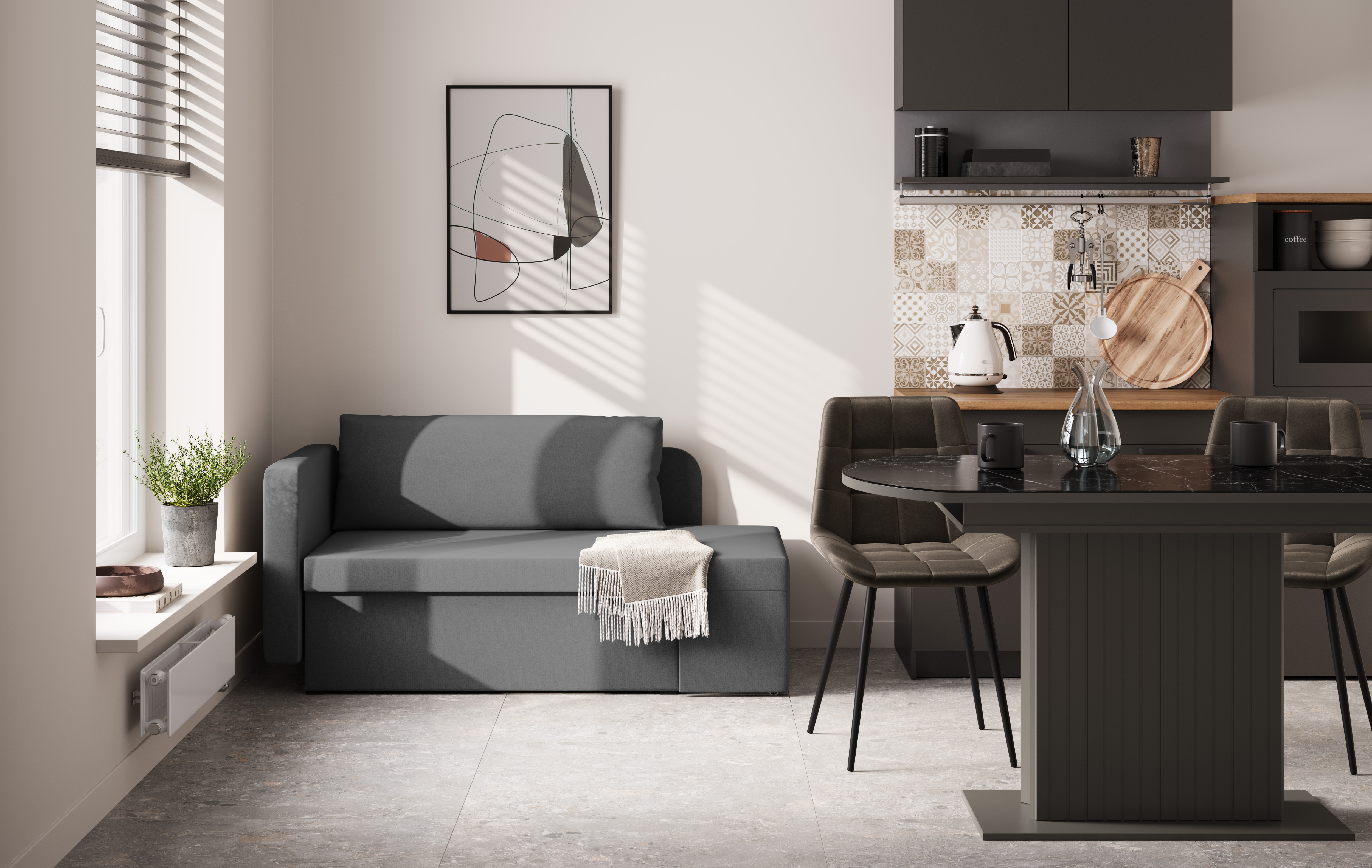 Шони / тахта (рогожка серая) совмещает благородную привлекательную эстетику с практичностью и хорошим функционалом. Продуманный дизайн уместно дополнит созданный интерьер и органично впишется в любое помещение.