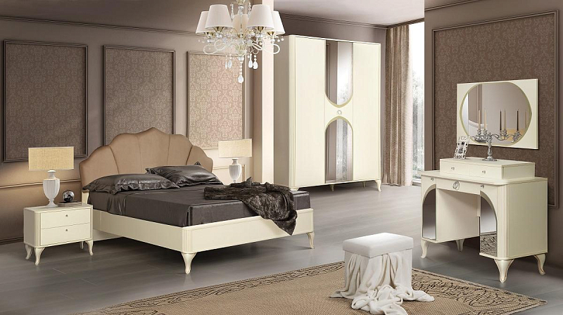Актуальные ансамбли отличаются высоким ресурсом и стильным внешним видом. Наборы мебели традиционно включают в себя кровати, шкафы и тумбы, а также могут дополнительно комплектоваться комодами и туалетными столиками. Модели соответствуют требованиям ГОСТ и имеют все необходимые сопроводительные документы. К главным преимуществам конструкций настоящего каталога можно отнести: